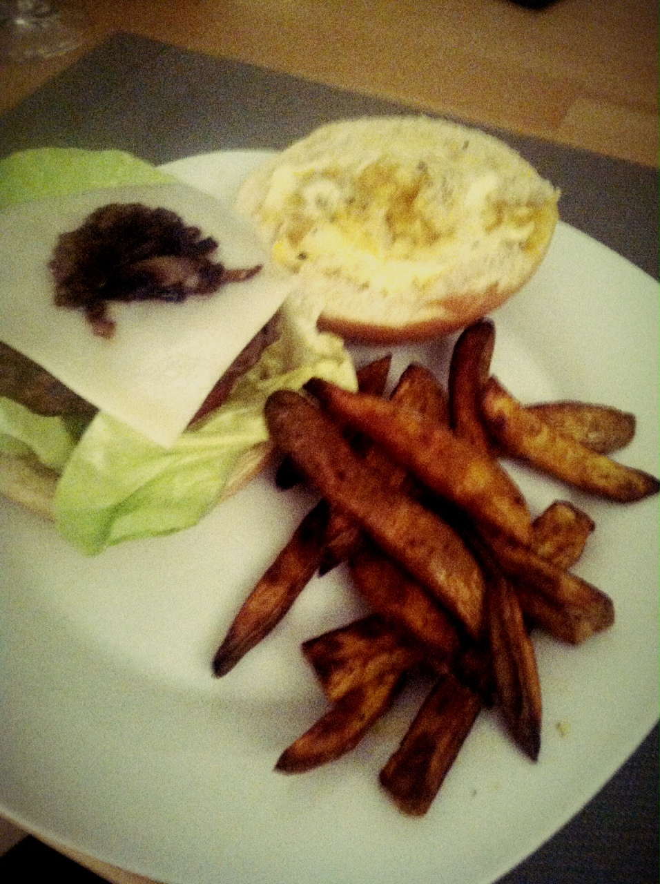 Während die Burgerländen weiter aus dem Boden sprießen und der amerikanische Favourite einmal mehr auf unserer Speisekarte steht, haben auch wir uns wieder einmal überlegt, wie wir unseren Teller mit einer gepimpten Variante des buns mit beef füllen können. Vielleicht mit einer süßen Sauce mit einer Prise Chili, einem herzhaften Käse und selbstgemachten Pommes? Klingt gut. Und dann hieß es: Burgertime – mit Ziegenkäse, Rotwein-Zwiebeln und Mango-Chili-Chutney, dazu Kurkuma-Pommes… Yummi